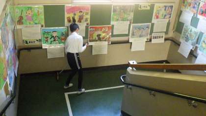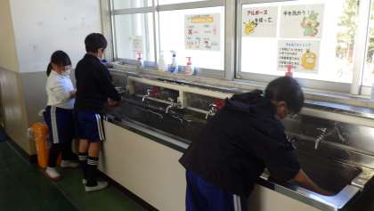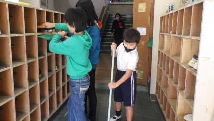 清掃強調週間 公開日 2021/12/16 更新日 2021/12/16 お知らせ 年末に向けて、学校も「大掃除」ならぬ「清掃強調週間」でいつもより少し丁寧に掃除をしています。清掃点検表に「テレビ台の上」「清掃道具入れ」等、その日必ず行う場所が書いてあるので、いつもの掃除に加えて、その場所を行います。掃除は南山班(縦割り)で行い、「今日はここもやってね。」と班長が確認をしています。 冬休み前に学校の中をきれいにして、さっぱりと新しい年を迎えたいものです。 特色ある活動