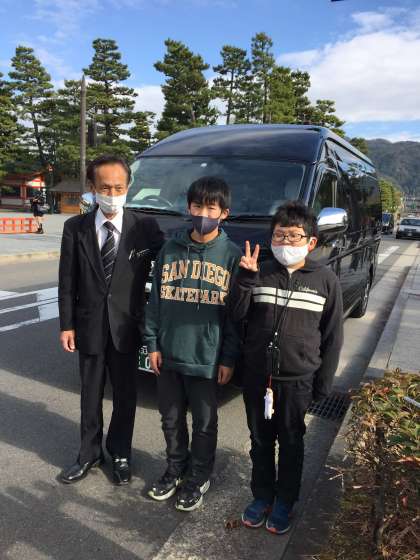 修学旅行 その11 公開日 2021/12/20 更新日 2021/12/20 お知らせ 学校別行動で、金閣寺の次は、白峯神宮と銀閣寺に行きました。1枚目の写真は、スポーツが上達するという玉を撫でているところです。最後にお世話になったタクシーの運転手さんとパチリ。丁寧に案内していただき、快適でした。 6年