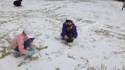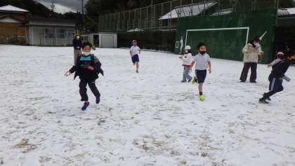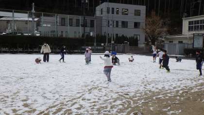雪遊び 公開日 2022/01/14 更新日 2022/01/14 お知らせ 1月14日(金)、雪が積もり、子どもたちは大喜びです。青空タイムには、運動場で雪合戦をしたり、雪だるまを作ったりして楽しみました。