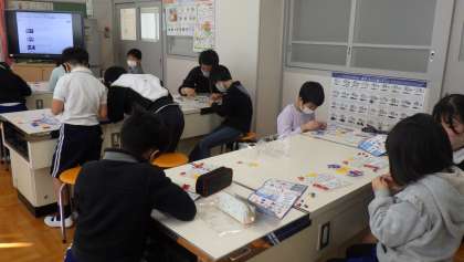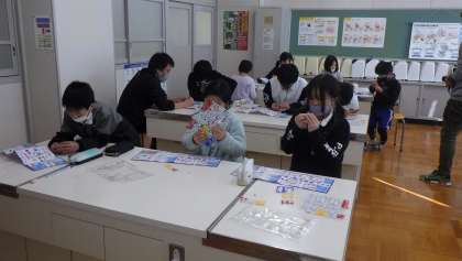 社会科「ものづくり」「工業」「SDGs」の学習として、4・5・6年生が、バンダイのプラモデル工場の見学ビデオを視聴しました。働く人の工夫やリサイクルについて学びました。その後、リサイクルプラスティックを使ったガンダムのプラモデルを作りました。材料を切り取って設計図を見ながら組み立てました。初めて行う子も、徐々に要領をつかみ、完成させて遊ぶことができました。