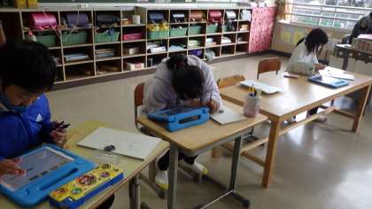 転がしゲーム 3・4年生 公開日 2022/01/21 更新日 2022/01/21 お知らせ 3・4年生の図工「転がしゲーム」です。今日は下絵を描きました。参考にしたい絵を見ながら、自分でデザインして鉛筆で板に描いていきます。絵を描いたら画鋲を打ち付けて転がしゲームにしていきます。 3年 4年