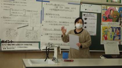 職員校内研修の様子です。1月20日(木)は、図工の読書感想画の指導について学びました。図工の得意な先生が講師を務め、指導のポイントを実技を交えて教えてくれました。いろいろな教科について、時には一緒に学んでいます。