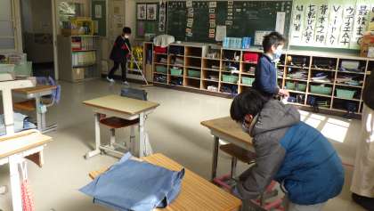 掃除 公開日 2022/02/03 更新日 2022/02/03 お知らせ 新型コロナの感染拡大防止のため、現在は縦割り活動をやめています。掃除も南山班(縦割り)でいつもは行っているのですが、今は、各学年が自分たちの教室や廊下を掃除しています。5,6年生は、教室や廊下以外にも、昇降口等、汚れやすいところを掃除してくれています。