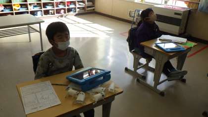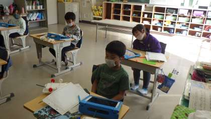 2年生の国語「しょうかいしよう」の学習です。2年生は生活科でおもちゃ作りをしました。そのおもちゃの作り方や使い方を1年生に紹介する会を開くので、それに向けて紹介の仕方を考え、練習をしています。また、1年生が昔話の勉強をしているので、2年生もお薦めの昔話を教えてあげようと考え、紹介の準備をしています。