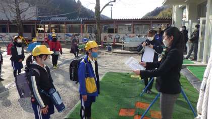 昨日(14日)の下校時、表彰を行いました。赤い羽根協賛児童生徒書道コンクールに、2名入選しました。おめでとうございます。