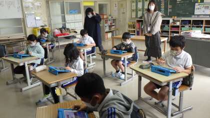 発表・交流アプリ 4年生 公開日 2022/02/21 更新日 2022/02/21 お知らせ 今日は、ICT支援員が来校しました。4年生が、ICT支援員に補助してもらいながら、発表・交流アプリを使って発表動画を作る練習をしました。 今日のテーマは「4年の教室」教室の写真や動画を用意し、「おとぎ話風」「冒険物語風」「ホラー風」等選んだり、修正したりして作成しました。 方法が分かったので、6年生を送る会に使うものも作れそうです。 4年