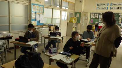 5,6年生の英語の授業です。「Who is your hero?」自分のヒーローについてみんなに説明をするプレゼンを行うので、その準備をしていました。
