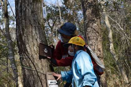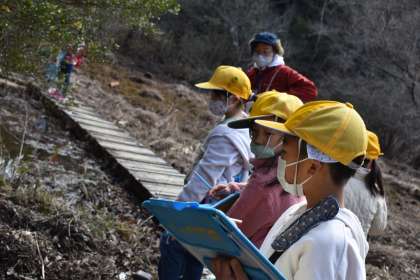 自然観察の森 1,2年生 その2 公開日 2022/03/04 更新日 2022/03/04 お知らせ 森へ入っていき、いろいろな生き物や植物を観察しました。「森の春を探すビンゴ」にある、「においがするもの」「生き物が食べたあと」「昆虫の卵」等を探し、見つけたものをみんなで観察して回りました。 1年 2年