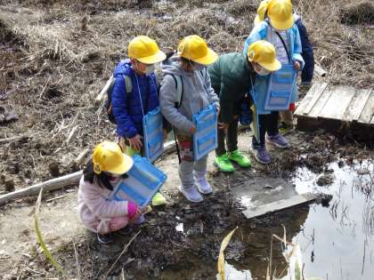 自然観察の森 1,2年生 その3 公開日 2022/03/04 更新日 2022/03/04 お知らせ 赤ガエルの卵やオタマジャクシ、藤の実、カメムシの卵や幼虫等、子どもたちは歓声を上げて見ていました。「これ、何かわかる?ムササビがクスの木の葉っぱを食べたあとだよ。」等、レンジャーさんに教えていただき、興味深く見入っていました。 ずっと延期になっていた校外学習。本物の自然にふれることができました。温かな春の日に実施できてよかったと思います。豊田自然観察の森の方々、ありがとうございました。 1年 2年