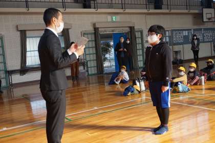 ビブリオスピーチ表彰 公開日 2022/03/08 更新日 2022/03/08 お知らせ 以前、豊田市中央図書館主催「ビブリオスピーチ」大会に、中金小学校の高学年が国語の授業で取り組み、参加をしました。これは、自分のお薦めの本についてスピーチをした様子を動画に撮って、中央図書館に送るというものです。 豊田市内からたくさん応募のあった中から、中金小学校の児童が入賞しました。本日、中央図書館の館長様がお越しになり、表彰をしてくださいました。