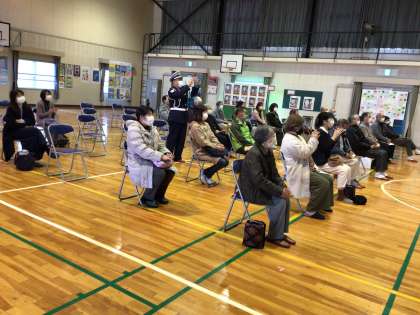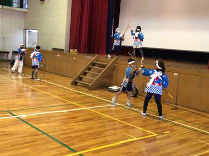 感謝の会 その4 公開日 2022/03/11 更新日 2022/03/11 お知らせ 2年生の子どもたちは、緊張した面もちでしたが、かけ声も勇ましく、堂々と発表し、大きな拍手をいただきました。 棒の手の後には、5、6年生の石野歌舞伎の動画発表も見ていただきました。 ご指導いただいた中切棒の手保存会、石野歌舞伎保存会の皆様はじめ、地域の方々に喜んでいただけました。 特色ある活動 地域学校共働本部