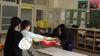 先生に送る字 3年生 公開日 2022/03/11 更新日 2022/03/11 お知らせ 3年生の書写は教頭が担当しています。担任の先生に字のプレゼントをしようと、子どもたちが練習をして書いた字を担任に渡していました。 「笑」「炎」等、担任の先生を思い浮かべた字を一人ずつ披露し、その理由を発表しました。 3年