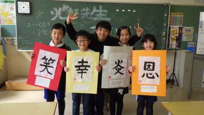 担任は、子どもたちにお礼を述べ、「3年生で初めて毛筆を習ったのに、よくこんなに上手に書けたね。」「毛筆に挑戦したように、これからも新しいことに挑戦していこうね。」と話をしました。