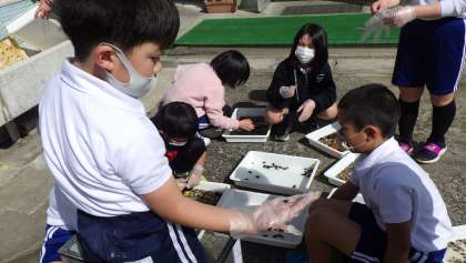 ホタルの放流 4年生 公開日 2022/03/24 更新日 2022/03/24 お知らせ 1年間、4年生が育ててきたホタルの幼虫。学校を流れる力石川に放流します。水槽の中の水を捨て、カワニナや敷き詰めてある小石を平たいバットに入れ、幼虫を探しました。カワニナの外に出ているものは1匹でした。それ以外にもカワニナの貝の中に入っているかもしれません。カワニナと幼虫を入れ物に入れ、小石や水槽を洗いました。 4年