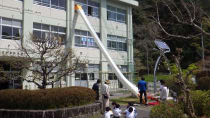 4月13日(水)に第1回避難訓練が行われました。びっくりしたのは、避難の仕方でした。整然と無言で集まる様子は、さすが中金っ子。救助袋を使った避難も全校体験しました。