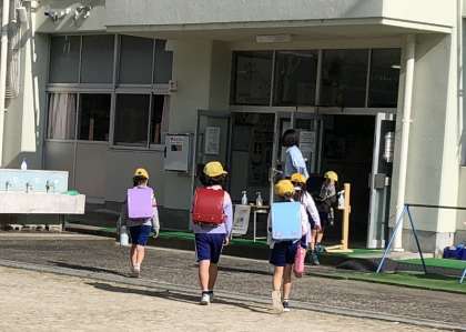朝の登校時の中金小学校