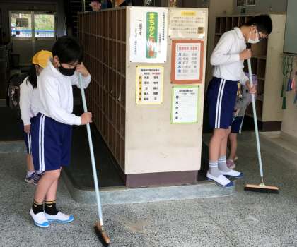 今日の朝の中金小学校です。朝から掃除をしている森川先生。「これは、この時期の私の仕事ですから」と黙々と掃除をされていました。毎朝、笑顔で迎えてくれる泉先生。多くの児童が、泉先生の姿を見ると大きな声で「おはようございます」と言ってくれます。そして、下駄箱周辺の掃除をする美化栽培委員の6年生おにいいさん。あさから多くの輝く姿が見られました。