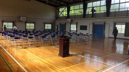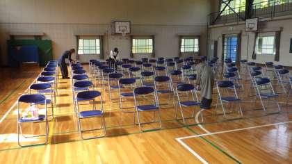 PTA役員の方たちに感謝です。過日に総会要項を準備して頂きさらに今日は、会場設営まで、本当にご苦労様です。そしてありがとうございます。会の打ち合わせをしたり、窓を開けたり、椅子の消毒まで行っていただきました。