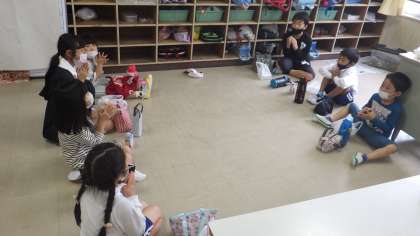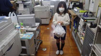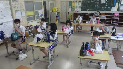 弁当も南山班で食べました。少し残念なのが、黙食。でもそこは中金っ子の皆さん。アイコンタクトや表情(笑顔など)で楽しい会食となりました。また、森音の会のワッフルとジュースもみんなを笑顔にしてくれました。班の代表の子が、職員室に届けられたワッフルとジュースを取りに来てくれました。