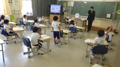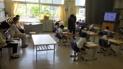 昨日、こども園・幼稚園の先生が本校にお見えになりました。1年生の授業の様子を見て、素晴らしく成長した姿に感心されていました。算数の授業でしたが、タブレットも慣れたもので、パスワードの入力から使用するアプリの起動まで、池部先生の指導に従い使いこなす姿も見ていただきました。その後、情報交換会を行い1年生のいいところを再確認する機会となりました。