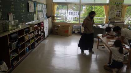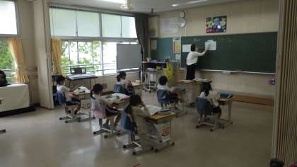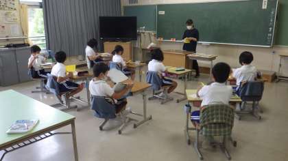 5年生は、明日からのキャンプについてしおりを使った確認作業を真剣な雰囲気で行っていました。4年生は、昨日捕まえた水生生物について観察・まとめを行っていました。3年生は、社会の授業で「豊田市の様子」についての授業を行っていました。どのクラスも落ち着いた雰囲気で授業が行われていました。