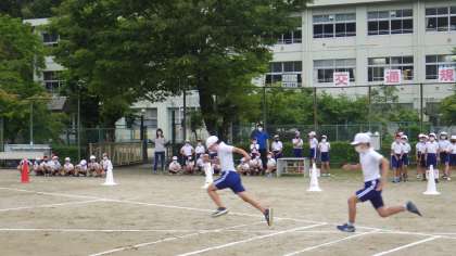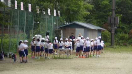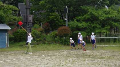 曇り模様の中、池部先生の注意を聞いてスタートしました。準備運動をして、いよいよ測定開始です。