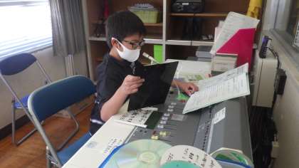 毎朝、校内放送から学校が始まります。今日1日の予定や注意することを放送します。階段を上がっていくと新しい掲示物を発見しました。