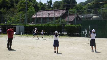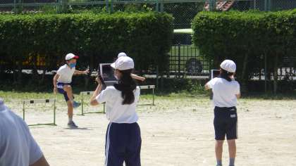 体育の授業でハードル走をやっています。そんな中でただ走るだけでなく、自分のフォームをタブレットのビデオ機能を使って、先生が言った様に走れているかを確認しています。とても有効な練習方法です。