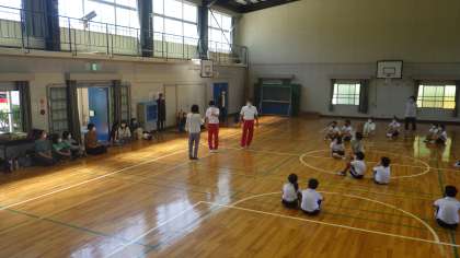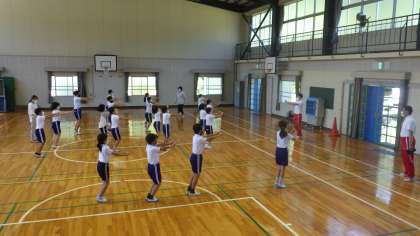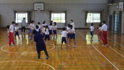 2時間目は高学年が対象で、コーディネーショントレーニングを学びました。コーディネーショントレーニングは、上手に体を動かすことのできる身体づくりを目指すトレーニングです。今日来ていただいた平井先生は、いろいろなテレビにも出演経験のある方で、テレビ番組の中で松岡修造さんにコーディネーショントレーニングについて取材を受けた経験もある方です。学年や男女を気にせずに仲よく運動する姿を、ほめていただきました。
