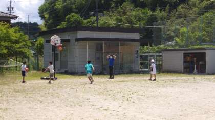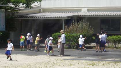 いろいろなことをして中金っ子は時間を過ごしています。今日は、最近設置されたバスケットゴールでバスケットをする子、1年生の子にチョウチョを捕まえてきてと頼まれたと言ってちょうちょを探している子、ミストシャワーを浴びてはしゃいでいる子、遊具で遊ぶ子たちもいます。