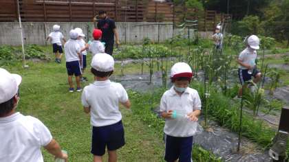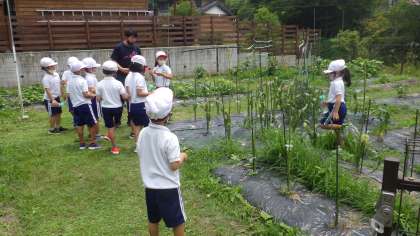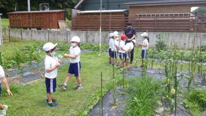 多くの学年の畑で収穫が始まってきています。今日もほとんどの学年が、水やりや雑草ぬきをしながら、収穫を楽しんでいました。1年生は、キュウリがたくさん採れました。