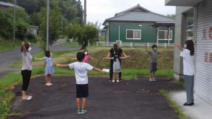 今日からラジオ体操も後半戦。後半は8月31日まで、8日間予定されています。今日は、野口町自治区のラジオ体操に参加してきました。少し蒸し暑さを感じる朝でしたが、参加者は、お母さんたちも含め、みんな朝からさわやかムードでした。今日までラジオ体操を1日も休まずに参加する子がほとんどだと聞いて素晴らしいと思いました。