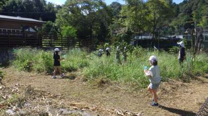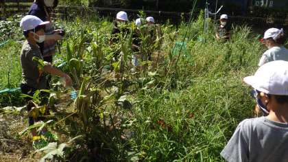 2年生が「ガーデンすくすく」(畑)で観察をしていました