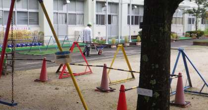 大型で強い勢力の台風14号が通り過ぎました。昨夜は、怖い思いをした方も少なくなかったと思います。学校は、16日の日に先生方が風に対する対策を取っていたため、大きな被害はなく今日を迎えることができました。本校は、水害に対して、注意深く状況判断しないといけません。今回も心配しましたが、校区においても大きな被害はなかったと思います。児童の皆さんも、元気に登校することができ安心しました。風で折れた小枝や砂で埋まっていた溝をきれいにしていただきました。