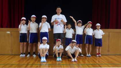 中京大学の先生でもあり、東京オリンピック陸上競技の日本代表コーチでもあり、自らオリンピック夏と冬の両方で日本代表として出場経験のある青戸慎司先生を、高橋スポーツクラブの仲介で講師に迎え3、4年生が「走り方教室」を行いました。青戸先生へのサプライズで5年生の皆さんが、指導を終えられた青戸先生を体育館の外で迎え、「夢先生」でお世話になった時のお礼を言いました。