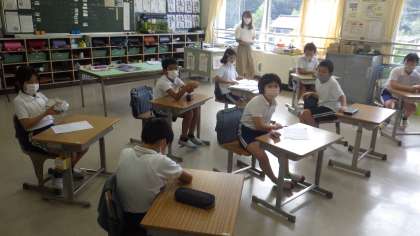 今日は、放送集会で始まりました。放送集会前に教室に行くと、少しリラックスした中金っ子の姿がありました。集会、5分前くらいでしたが多くの中金っ子が席に座って、放送を待っていました。今日の放送に中で池部先生から交通安全についてお話がありました。