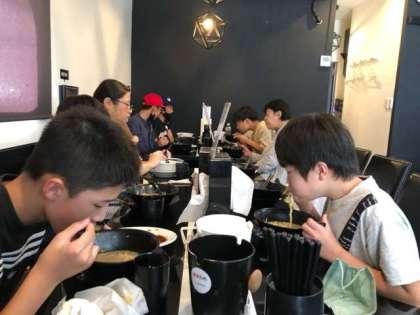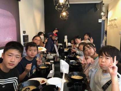 みんな元気に昼食を食べています。お腹いっぱいです。