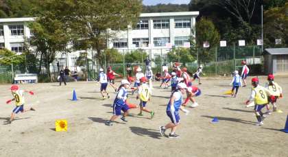 今年から行う競技です。観ていて、とても体力のいる競技です。さて本番は、赤白どっちが勝つのかな。