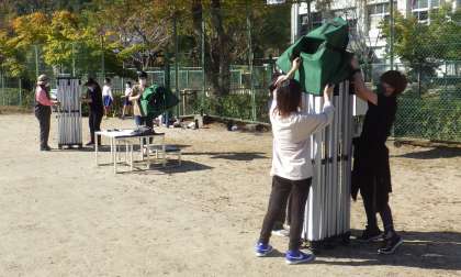 PTAの方の手助けもありました。テント張り、万国旗、テーマの取り付けなどをあっという間に完成させていただけました。ありがとうございました。