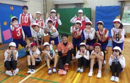 今日も、2時間目から4時間目まで本校の元校長先生だった石崎先生を特別講師にお招きして体育の授業を行っていただきました。今日が3回目で最終日です。最後に記念写真を撮りました。授業を終えられて、石崎先生は、「本当に気持ちよく体育の授業が出来ました。」と中金っ子の素晴らしさを話して帰って行かれました。