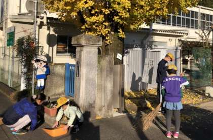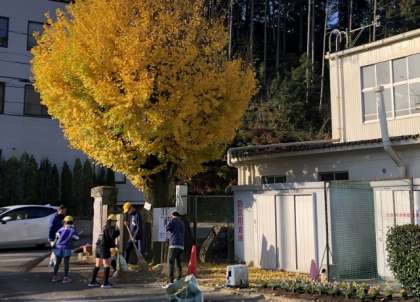 今朝の中金小学校の様子です。本校の校庭にある木の中で、最も古い木である銀杏が黄葉し落ち葉となっています。それを登校した中金っ子が綺麗に掃き掃除してくれています。本校は、この作業がしばらく続きます。その他にも毎日、旗を掲揚してくれる児童もいます。