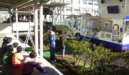 第4回避難訓練を行いました。今日は、豊田市消防本部防災課から2名の署員の方をお招きし、防災指導車「防サイ君」で震度6強の体験をしたり、理科室で煙道体験をしたりしました。震度6強の揺れはとても激しく、机の下に潜っていていることすら大変でした。また、煙道体験では、低い姿勢で口を布等で覆い、出口まで行く体験をしましたが、停電し煙で暗くなったところを歩行することが大変だということがわかりました。とても貴重な体験でした。署員のお2人が中金っ子のまじめな態度をとても褒めて帰って行かれました。