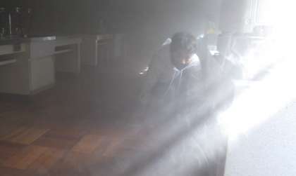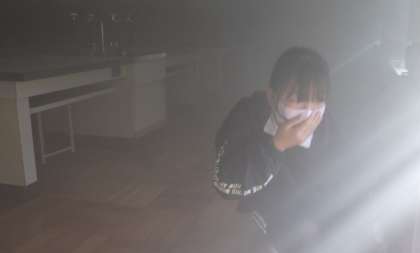 第4回避難訓練を行いました。今日は、豊田市消防本部防災課から2名の署員の方をお招きし、防災指導車「防サイ君」で震度6強の体験をしたり、理科室で煙道体験をしたりしました。震度6強の揺れはとても激しく、机の下に潜っていていることすら大変でした。また、煙道体験では、低い姿勢で口を布等で覆い、出口まで行く体験をしましたが、停電し煙で暗くなったところを歩行することが大変だということがわかりました。とても貴重な体験でした。署員のお2人が中金っ子のまじめな態度をとても褒めて帰って行かれました。