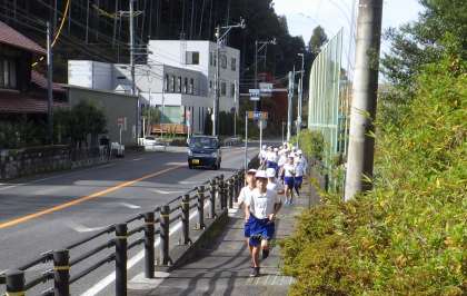 準備運動をして、ランニングスタートです。中金っ子は、辛い事にも一生懸命に取り組めます。今日は、本番ではないかと思う程、みんな一生懸命に走っています。クールダウンをして無事終えました。