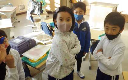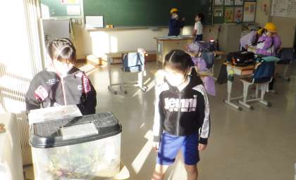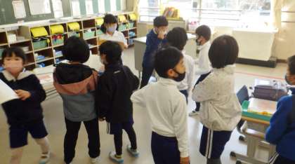 今朝の中金小学校の様子です。登校後、すぐの教室での様子です。中金小学校の早朝の気温は、3度でした。寒くないように、暖房が入っている中、自由に過ごしています。どこか、温かい雰囲気が漂っています。