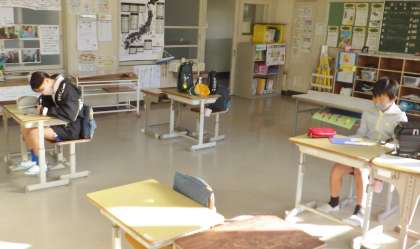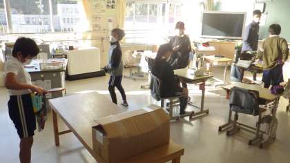 今朝の中金小学校の様子です。登校後、すぐの教室での様子です。中金小学校の早朝の気温は、3度でした。寒くないように、暖房が入っている中、自由に過ごしています。どこか、温かい雰囲気が漂っています。