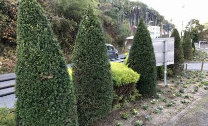 国道沿いの花壇に植わっているツゲの木が綺麗な三角形に刈りこまれました。行っていただけたのは、植栽活動でもお世話になっている鈴鍵様です。やっぱり手入れされると一層素敵な場所になりますね。いつもきれいにしていただいている鈴鍵様には感謝です。交通安全標語もよく見える様になりました。