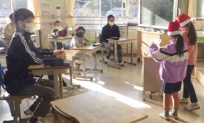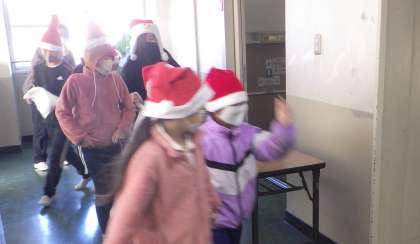 本当にかわいいサンタさんが中金小学校中にプレゼントを配ってくれました。教室だけではなく、保健室にも配膳室にも職員室にも校長室にも来てくれました。中金小学校は幸せな気持ちに包まれています。