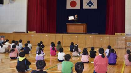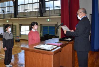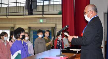 冬休み前集会を行いました。内容は、赤い羽根作品コンクールの習字の部の表彰、中金賞の表彰、校長の話、冬休みの生活・健康についての話、児童伴奏による校歌斉唱を行いました。体育館への入退場の態度の素晴らしさと話を聞く姿勢は、本当に素晴らしいです。