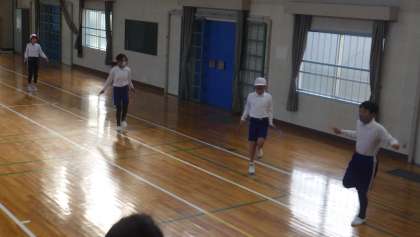 3、4年生が体育館で体育の授業を行っていました。リズム縄跳びを全校で行っています。1月23日には、全校体育でリズム縄跳びを行います。縄跳びは、全身運動で神経にもいい刺激が加わる、小学生にはとてもいい運動です。中金っ子もリズム縄跳びで運動神経と体力アップを図ります。